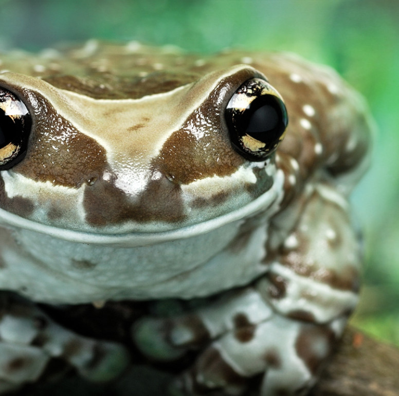Amazon milk frog inhabits moist tropical rainforests.